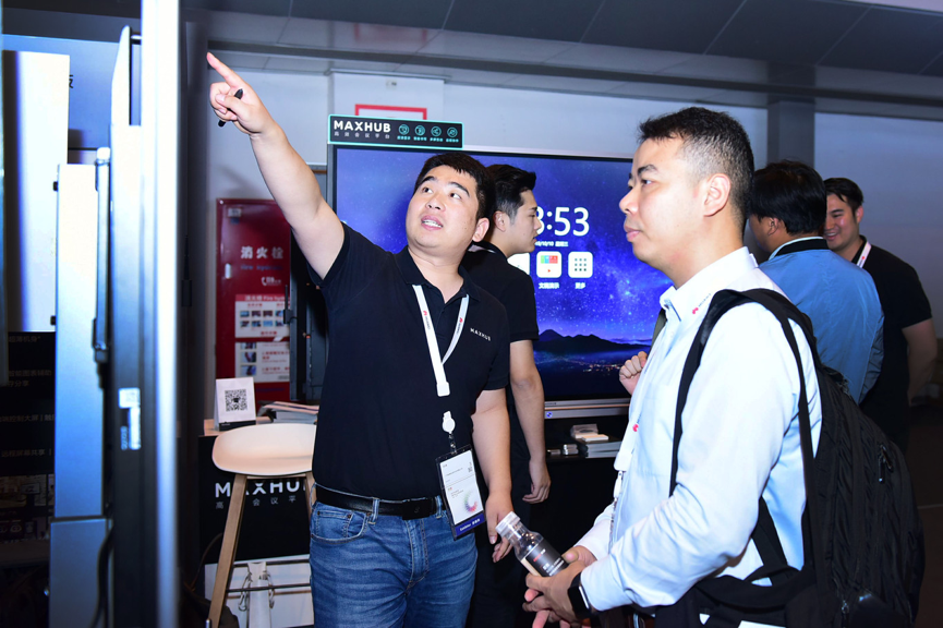 (展會現場,MAXHUB工作人員為參會者介紹MAXHUB X3系列新品)